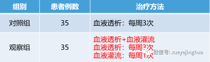 有研究者比較了血液灌流對于尿毒癥性瘙癢治療效果的觀察①,選取了70例尿毒癥伴皮膚瘙癢患者作為研究對象,分兩組,每組35人。對照組采用血液透析(HD)治療,每周透析3次。觀察組采用血液透析+血液灌流(HD+HP)的方式治療,每周血液透析串聯(lián)血液灌流治療一次,血液透析兩次。其中,觀察組使用的血液灌流器為淄博康貝醫(yī)療器械有限公司生產(chǎn)的雪凈品牌RA130型樹脂血液灌流器。比較兩組實(shí)驗(yàn)結(jié)果。