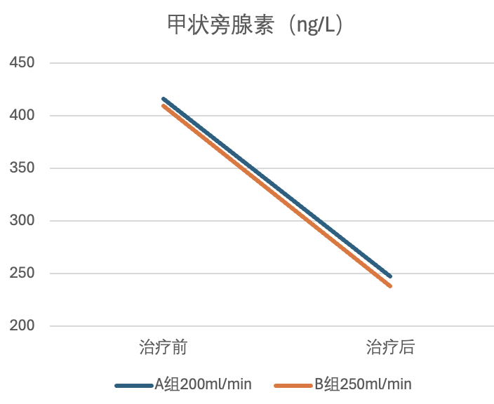 有研究表明,HD+HP治療時,200ml/min的流速與250ml的流速對于機(jī)體毒素(肌酐、尿素、β2-微球蛋白、甲狀旁腺素)的清除作用無明顯差異。[1]